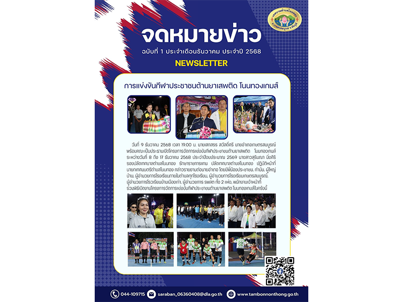 วันที่ 9 ธันวาคม 2568 เวลา 19.00 น. นายเสกสรร สวัสดิ์ศรี นายอำเภอเกษตรสมบูรณ์พร้อมคณะเป็นประธานเปิดโครงการจัดการแข่งขันกีฬาประชาชนต้านยาเสพติด โนนทองเกมส์ ระหว่างวันที่ 8 ถึง 17 ธันวาคม 2568 ประจำปีงบประมาณ 2569 นางสาวสุรินณา มิ่งศิริ รองปลัดเทศบาลตำบลโนนทอง รักษาราชการแทน ปลัดเทศบาลตำบลโนนทอง ปฏิบัติหน้าที่นายกเทศมนตรีตำบลโนนทอง กล่าวรายงานต่อนายอำเภอ โดยมีพี่น้องประชาชน, กำนัน, ผู้ใหญ่บ้าน, ผู้อำนวยการโรงเรียนภายในตำบลทุกโรงเรียน, ผู้อำนวยการโรงเรียนเกษตรสมบูรณ์, ผู้อำนวยการโรวเรียนบ้านเมืองเก่า, ผู้อำนวยการ รพสต ทั้ง 2 แห่ง, พนักงานเจ้าหน้าที่ร่วมพิธีเปิดงานโครงการจัดการแข่งขันกีฬาประชาชนต้านยาเสพติด โนนทองเกมส์ในคร้งนี้