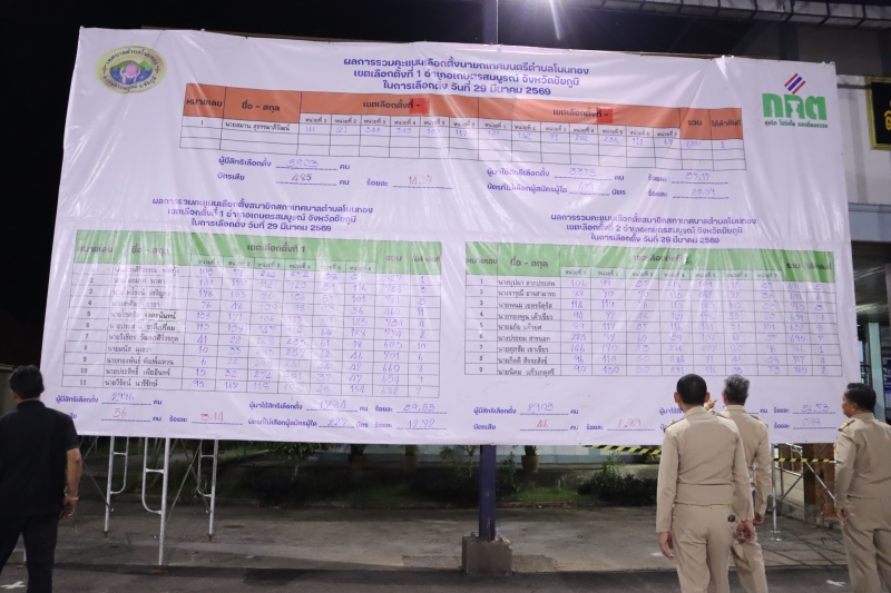 รายงานผลการนับคะแนนเลือกตั้ง (อย่างไม่เป็นทางการ) ในวันอาทิตย์ที่ 29 มีนาคม พ.ศ. 2569