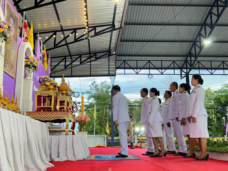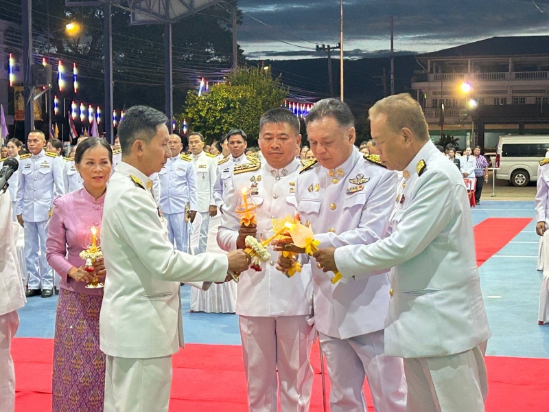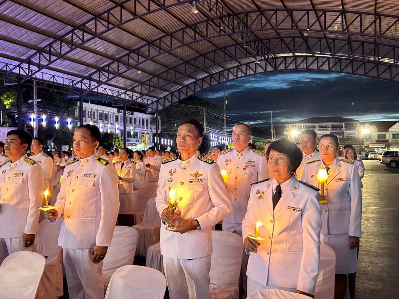 เวลา 17.30 น ร่วมพิธีถวายเครื่องราชสักการะ และวางพานพุ่ม และพิธีจุดเทียนถวายพระพรชัยมงคล ณ บริเวณอาคารโดมหน้าที่ว่าการอำเภอเกษตรสมบูรณ์