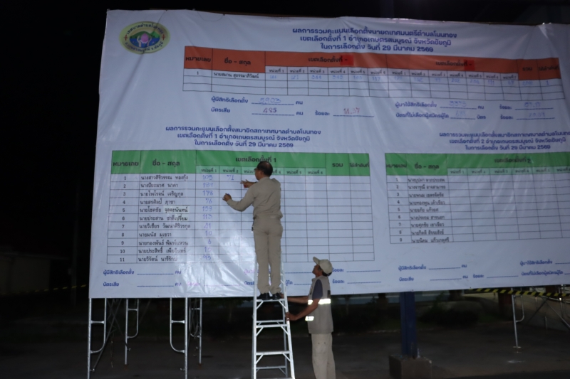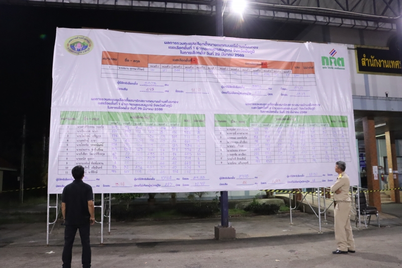 รายงานผลการนับคะแนนเลือกตั้ง (อย่างไม่เป็นทางการ) ในวันอาทิตย์ที่ 29 มีนาคม พ.ศ. 2569
